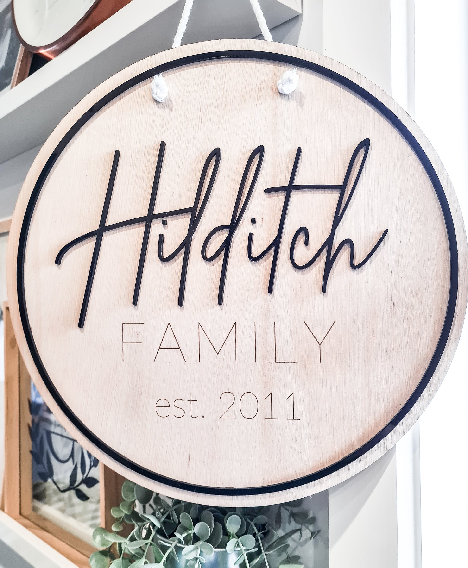 What a beautiful way to make a statement in your home - a personalised family plaque. These gorgeous 35cm plaques can be created with holes and ivory coloured cotton rope for hanging, or without holes where it can be propped up on a shelf.