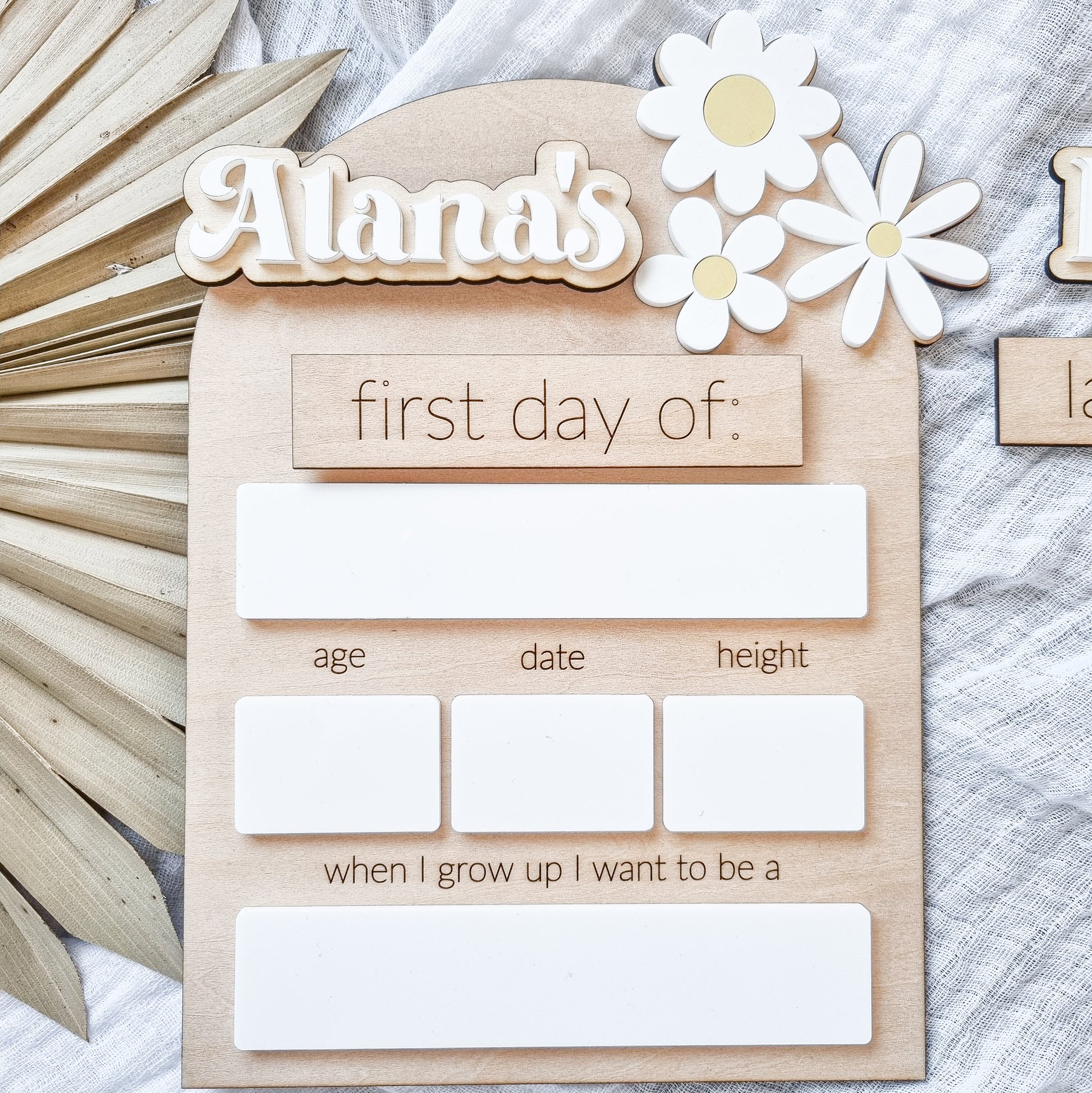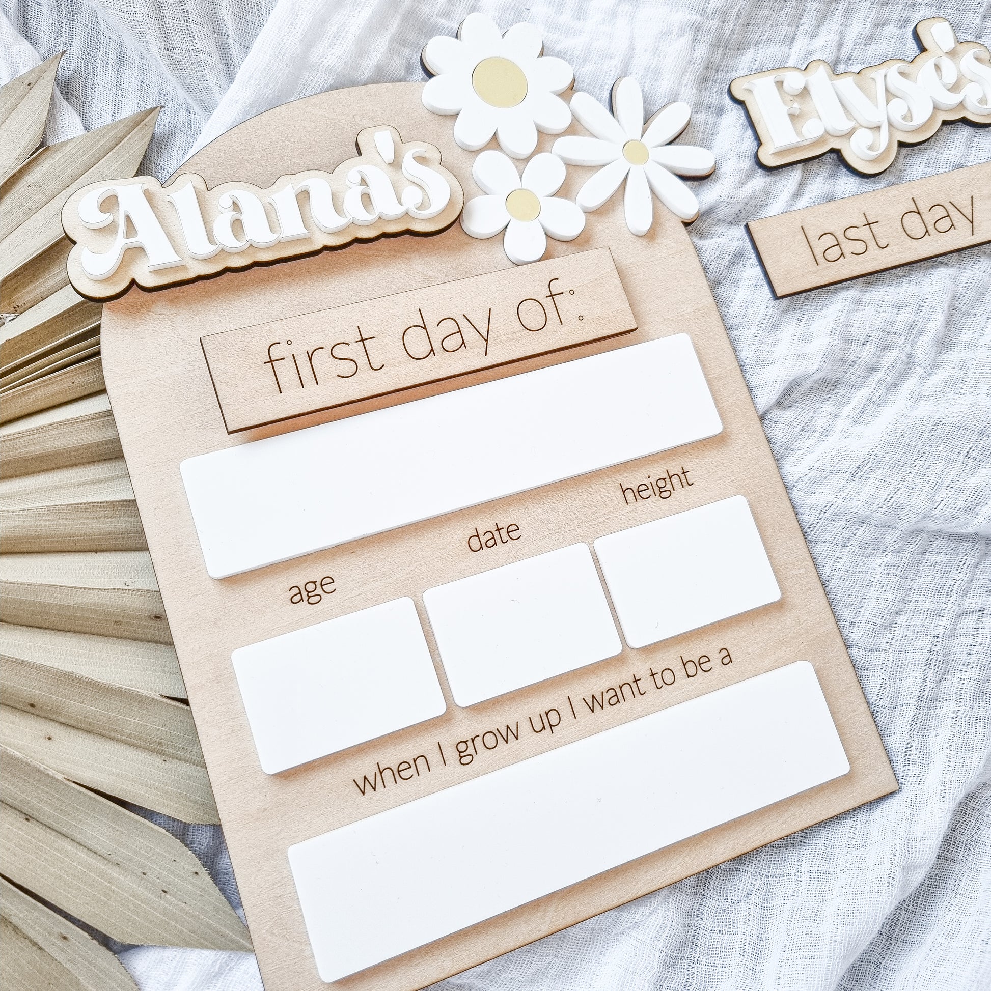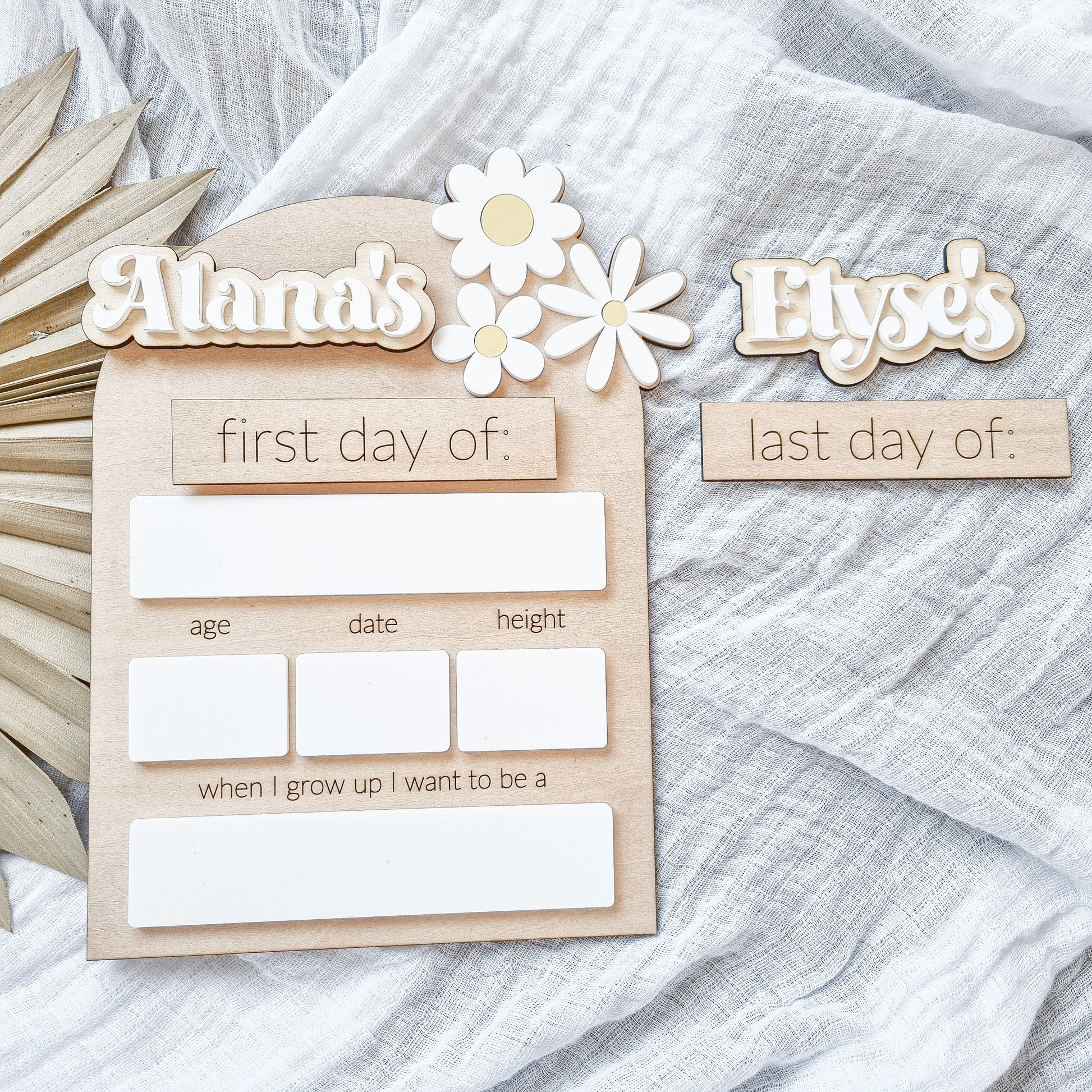 Our personalised, reusable First & Last day boards are an amazing addition to any household. Daycare, preschool, kindy, primary school and high school (if they'll use them then!!) are all such big milestones for you little ones, and our personalised boards are the perfect way to help capture those special moments in photos. Memories are golden and so treasured.