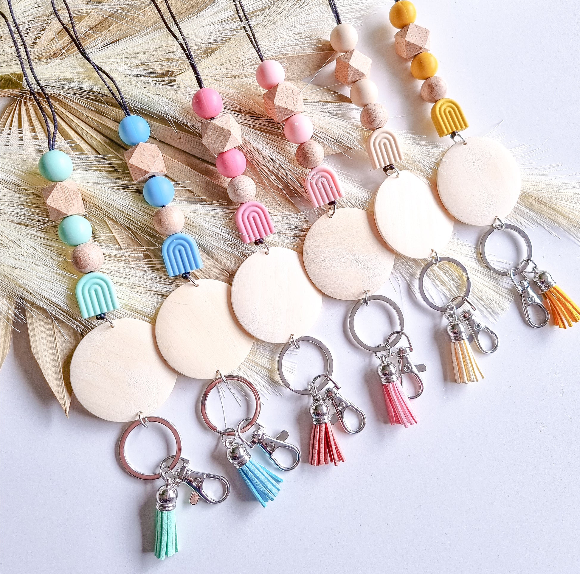 These Lanyards are handmade and are also personalised using our laser, meaning unlike a sticker decal, the personalisation will not fall off over time. They are made using the best of materials, with black nylon cord and matching safety breakaway clasp, timber beads and BPA free silicone beading, a 5cm timber round (which is where the name is engraved) and silver metal keyring findings (perfect for swipe cards and keys!). The Lanyards are approximately 50cm in length (nylon length).